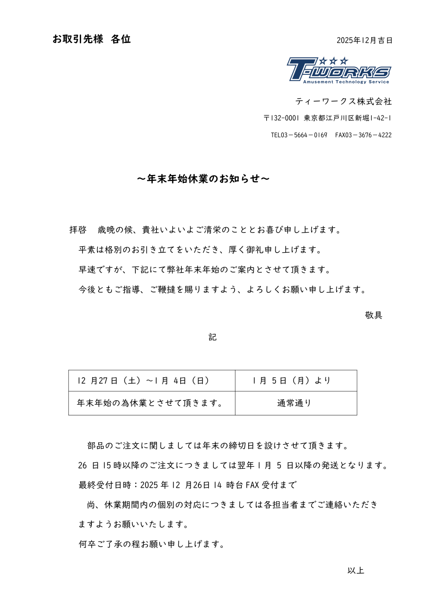 - ティーワークス株式会社は創業10周年を迎えました。皆様の温かい御厚情の賜物と心より深く御礼申し上げます。
